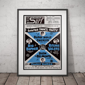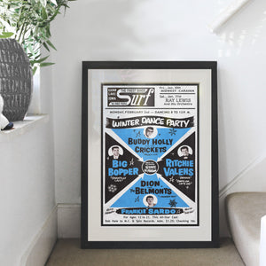 A legendary moment in music history with this Buddy Holly Last Concert Poster Print (1959), As well as print and posters this is also available in three stylish frames.