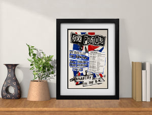 Sex Pistols 1976 First UK All Dates Concert Poster - Multi Size Prints or THREE FRAMED Options