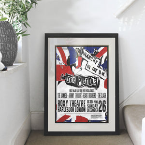 Sex Pistols 1976 First UK Tour Concert Poster - Multi Size Prints or THREE FRAMED Options