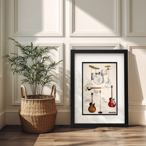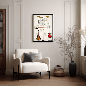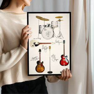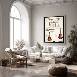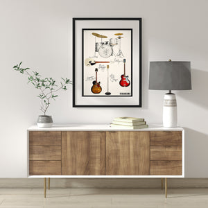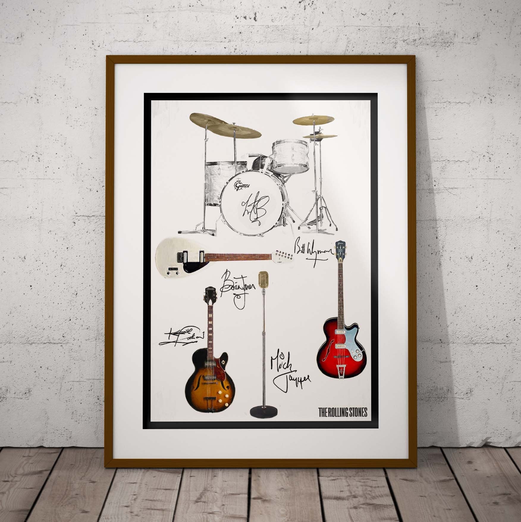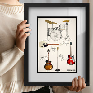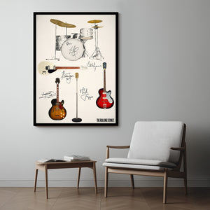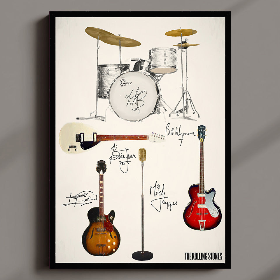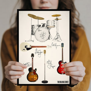 This print shows the Guitars and Drum Kit that the early Rolling Stones; Mick, Brian, Keith, Bill & Charlie were more closely associated with - a True Stones fan will love this!