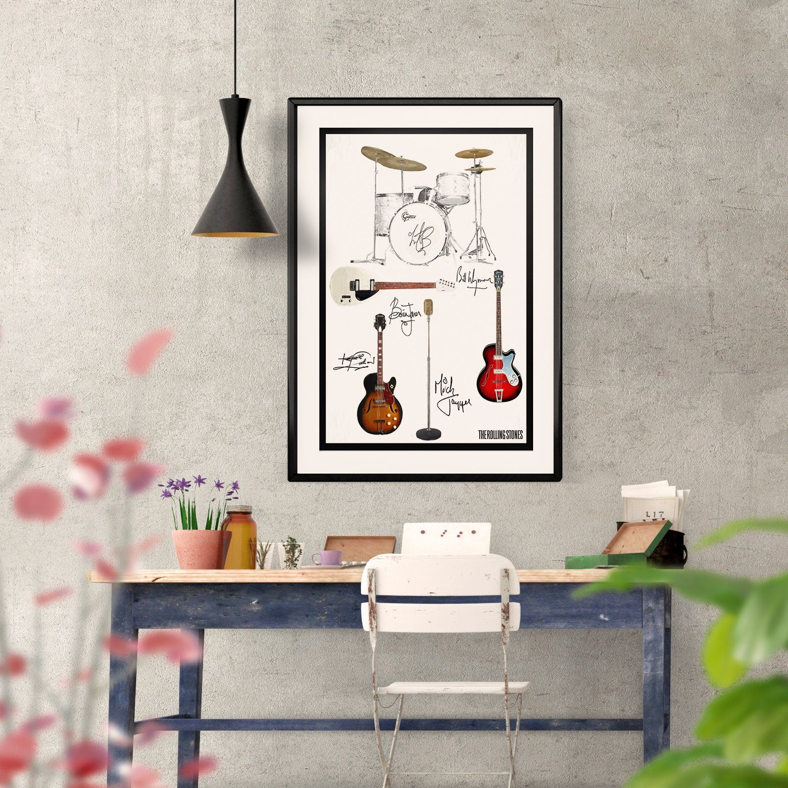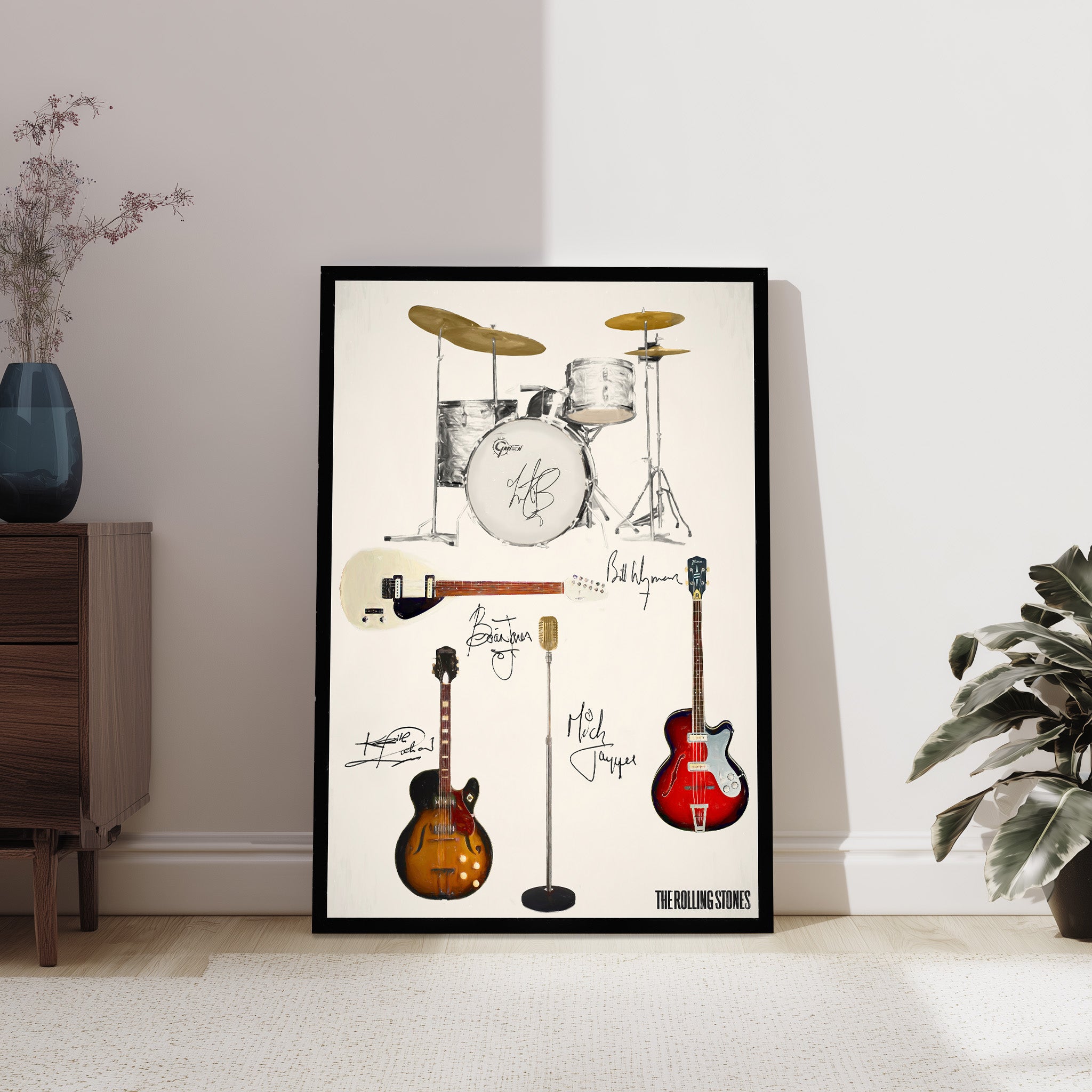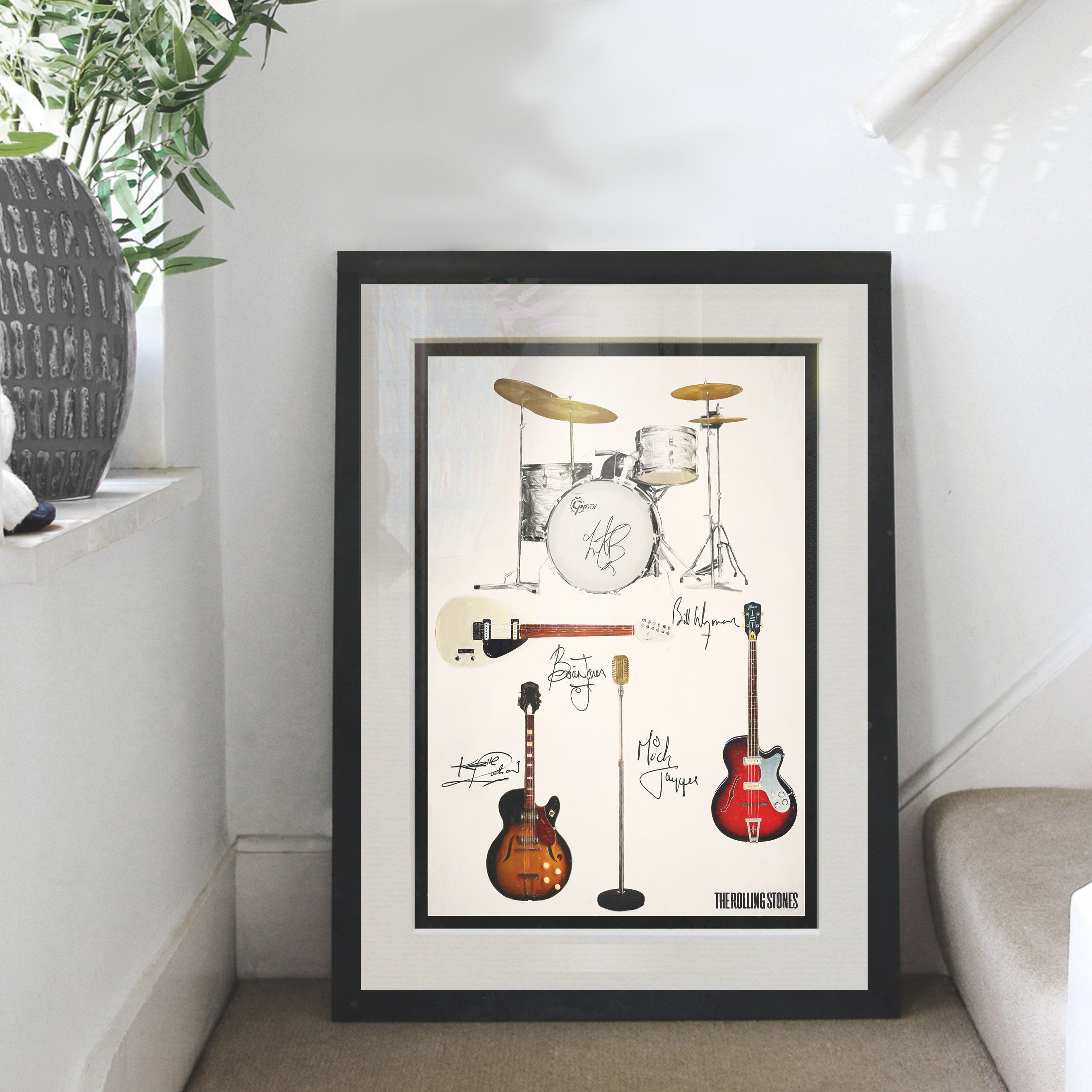 This print shows the Guitars and Drum Kit that the early Rolling Stones; Mick, Brian, Keith, Bill & Charlie were more closely associated with - a True Stones fan will love this!